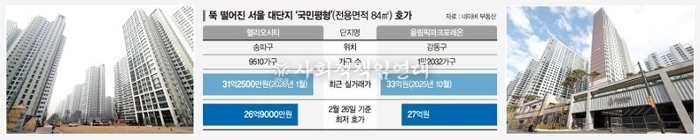 - 외신 보도에 따르면, 헬리오시티 84㎡는 1월 실거래가 31억2500만 원에서 2월 급매 호가가 27억~28억 원대로 내려왔고,