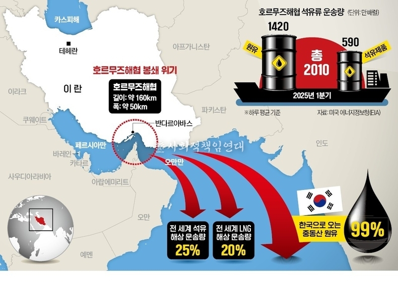 호르무즈 해협을 경유하는 중동산 원유 공급에 차질이 생기면