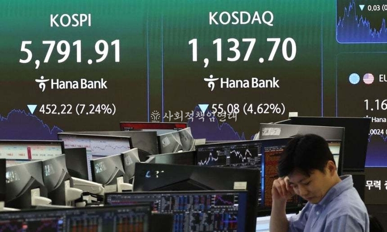 3일 코스피는 전 거래일 대비 452.22포인트(7.24%) 급락한 5,791.91로 마감했다. 장중 6,000선이 붕괴되고 하락 사이드카까지 발동되는 등 패닉에 가까운 매도가 이어졌다. 한국형 공포지수인 VKOSPI는 장중 59.90까지 치솟아, 코로나19 금융위기 당시인 2020년 3월 24일 이후 약 6년 만의 최고치를 기록했다.