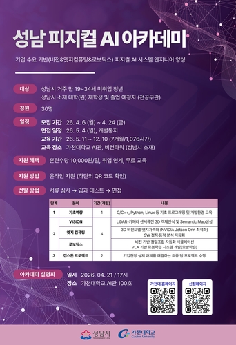성남시(시장 신상진)는 물리 세계와 인공지능(AI)을 결합한 '피지컬 인공지능(AI)(Physical AI)' 분야 핵심 인재를 양성하기 위해 '성남 피지컬 인공지능(AI) 아카데미' 교육생을 4월 24일까지 모집한다.